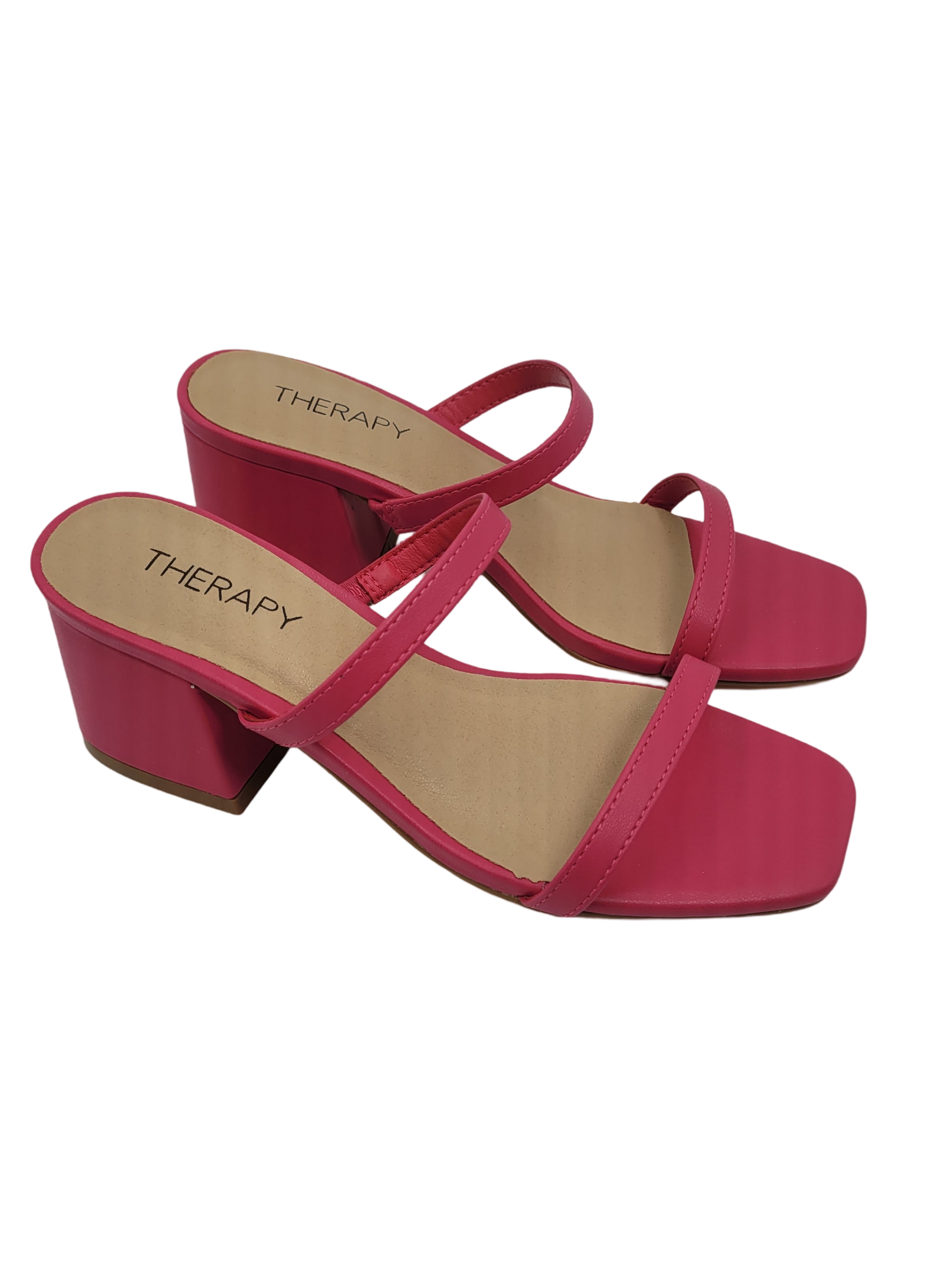 Slip into slick style with Goldie Magenta by Therapy! Designed with the chic double skinny strap, this slide on mule is the ultimate addition to your footwear collection.